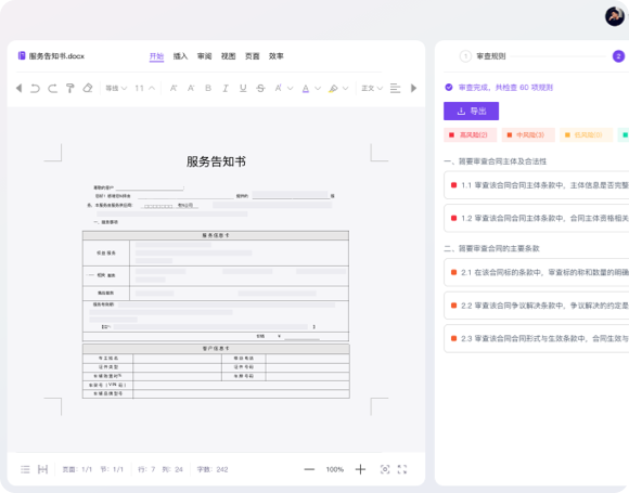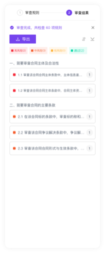 AI快速识别合同潜在的风险,提供专 业的合同风险和修改建议